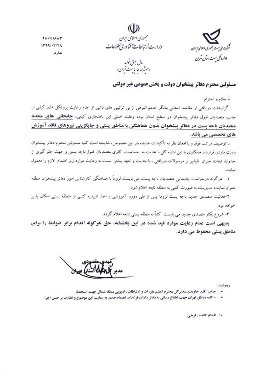 اطلاعیه /قابل توجه مسئولین محترم دفاتر پیشخوان دولت و بخش عمومی غیر دولتی نوشته شده در خرداد ۳, ۱۳۹۹دی ۱, ۱۳۹۹ توسط مهندس طاهری 0 برای مشاهده بخشنامه روی تصویر زیر کلیک کنید . روابط عمومی کانون دفاتر پیشخوان دولت و بخش عمومی کشور