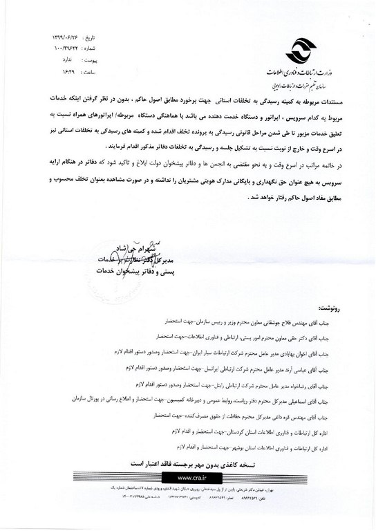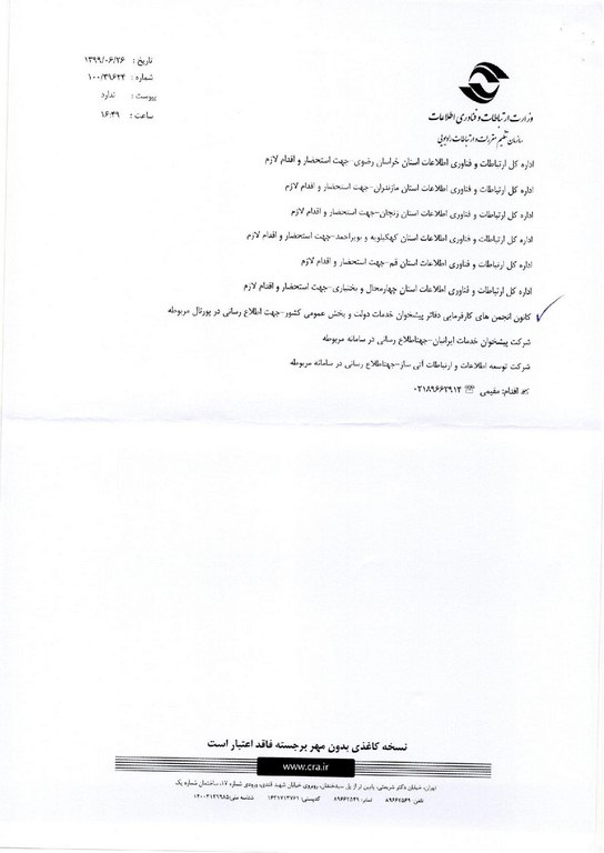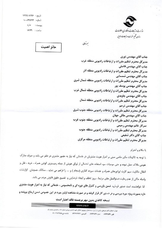 نامه مدیر کل دفتر نظارت بر خدمات پستی و دفاتر پیشخوان خدمات در خصوص اهمیت احراز هویت مشتریان نوشته شده در مهر ۴, ۱۳۹۹دی ۱, ۱۳۹۹ توسط مهندس طاهری 0 روابط عمومی کانون دفاتر پیشخوان دولت و بخش عمومی کشور
